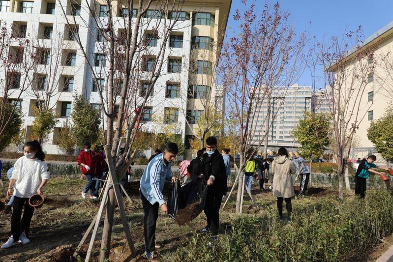 在张健书记、毕拉丁校长的带领下,全体师生积极投入校园绿化美化工作现场,清理杂物、挥锹埋肥,认真对待每一个细节,整个劳动过程大家干劲十足,配合默契,有效完成了劳动任务。